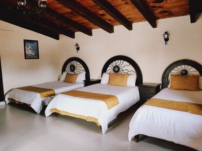 This triple room features a flat-screen TV with cable channels and a private bathroom. It is equipped with three beds.